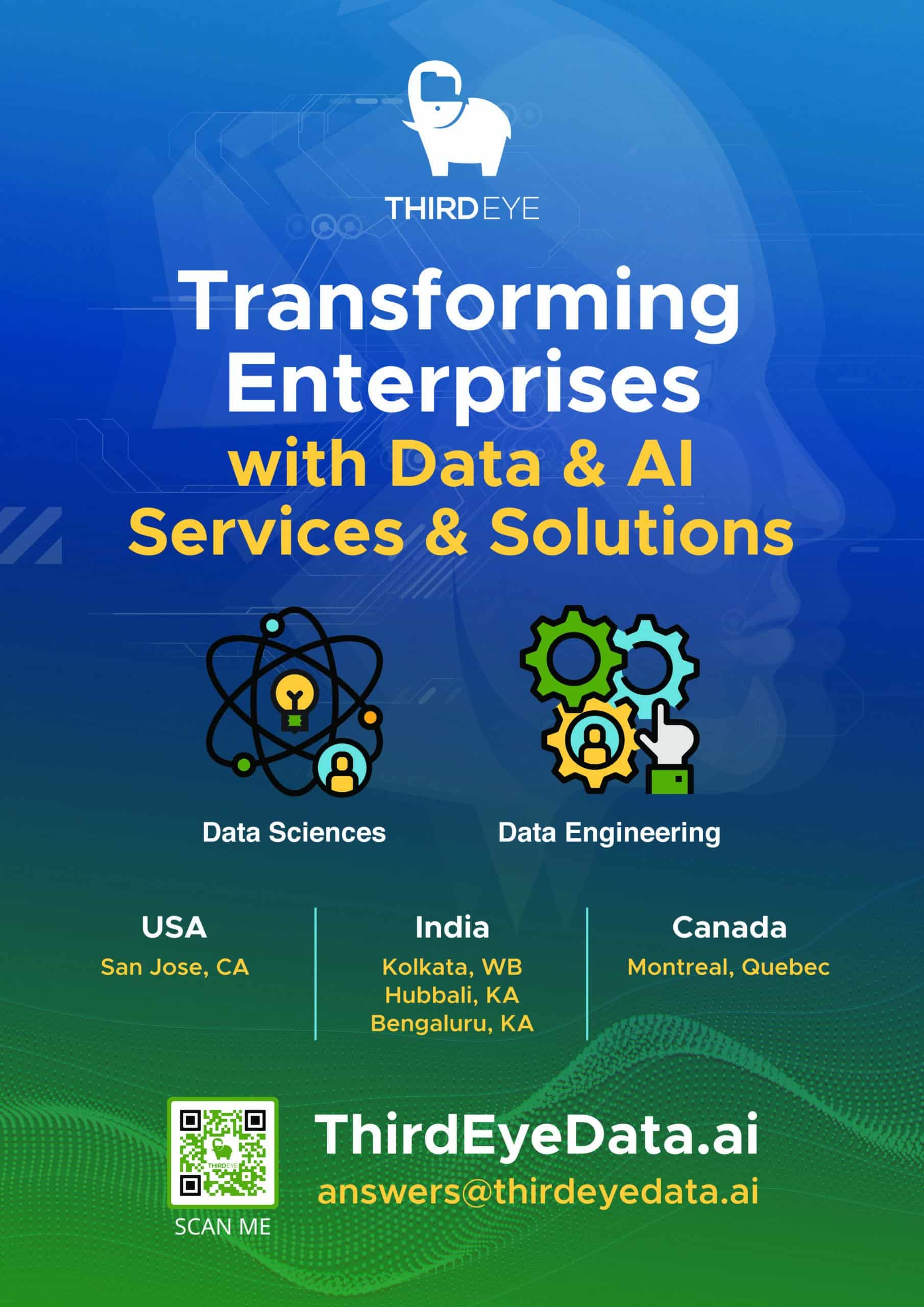 ThirdEye Data has served the U.S. market for over a decade, building end-to-end solutions for startup companies and Fortune 500 enterprises, creating a solid foothold in the technical market. Its services help organizations transform their existing knowledge into strategic insights for tactical business deployment, enabling key executives to make informed and timely decisions.