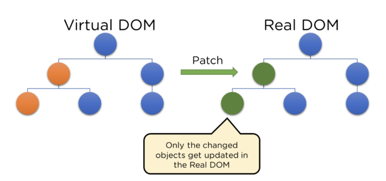 When the state of an object changes in a React application, VDOM gets updated. It then compares its previous state and then updates only those objects in the real DOM instead of updating all of the objects. This makes things move fast, especially when compared to other front-end technologies that have to update each object even if only a single object changes in the web application.